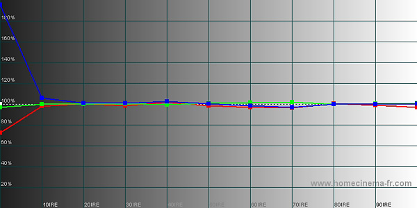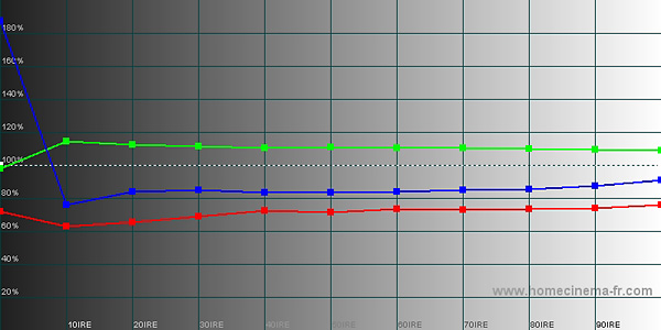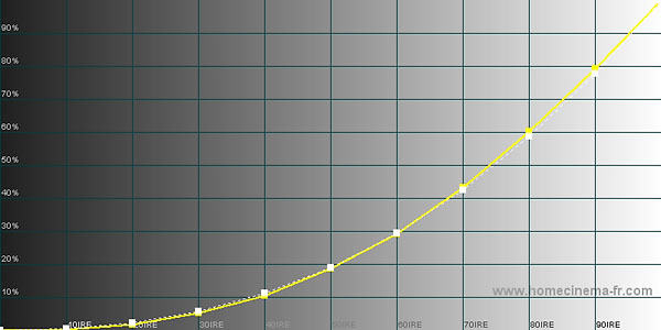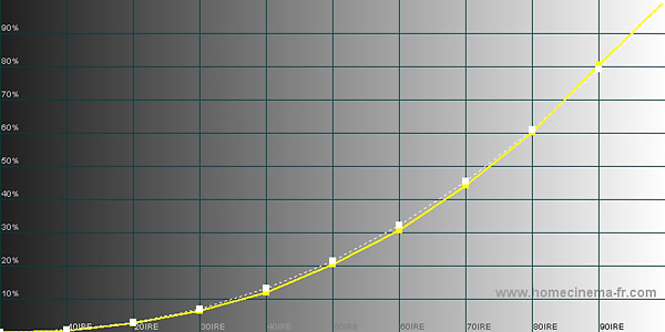 Deswegen wirkte das Bild so flau. Der Gammaanstieg liegt nur im mittleren Bereich bei 2.2. In hellen und in dunklen Bereichen liegt das Gamma deutlich drunter. In unserem Heimkino sollte man eher Gammaanstieg von 2.4 anstreben.