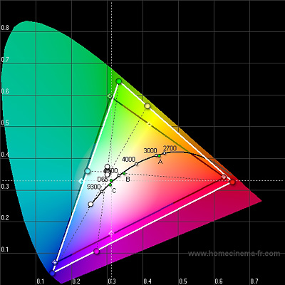 Das erklärt warum das Bild einen Grünstich hatte. Das ist weit weg von der Videonorm entfernt. Mehr als 40% zu viel Grün im Bild und das bei 6500K Einstellung am Projektor.